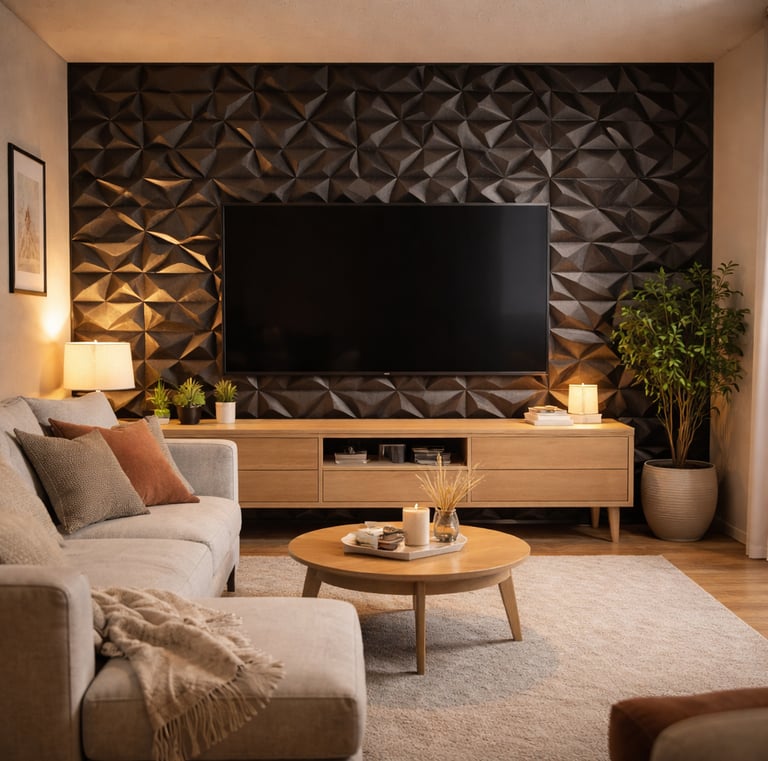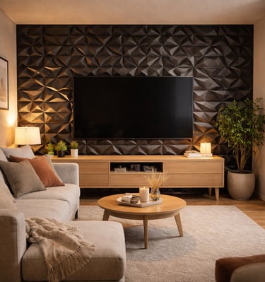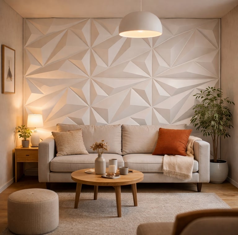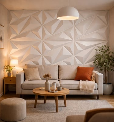 Es un panel decorativo para muros que crea relieve y profundidad, aportando un efecto moderno y elegante al espacio. Se utiliza principalmente como muro decorativo o acento en interiores.